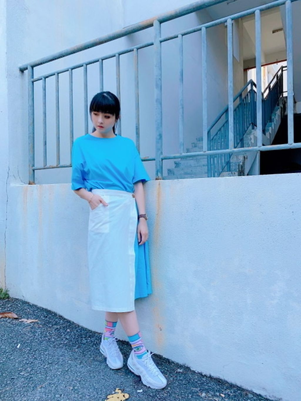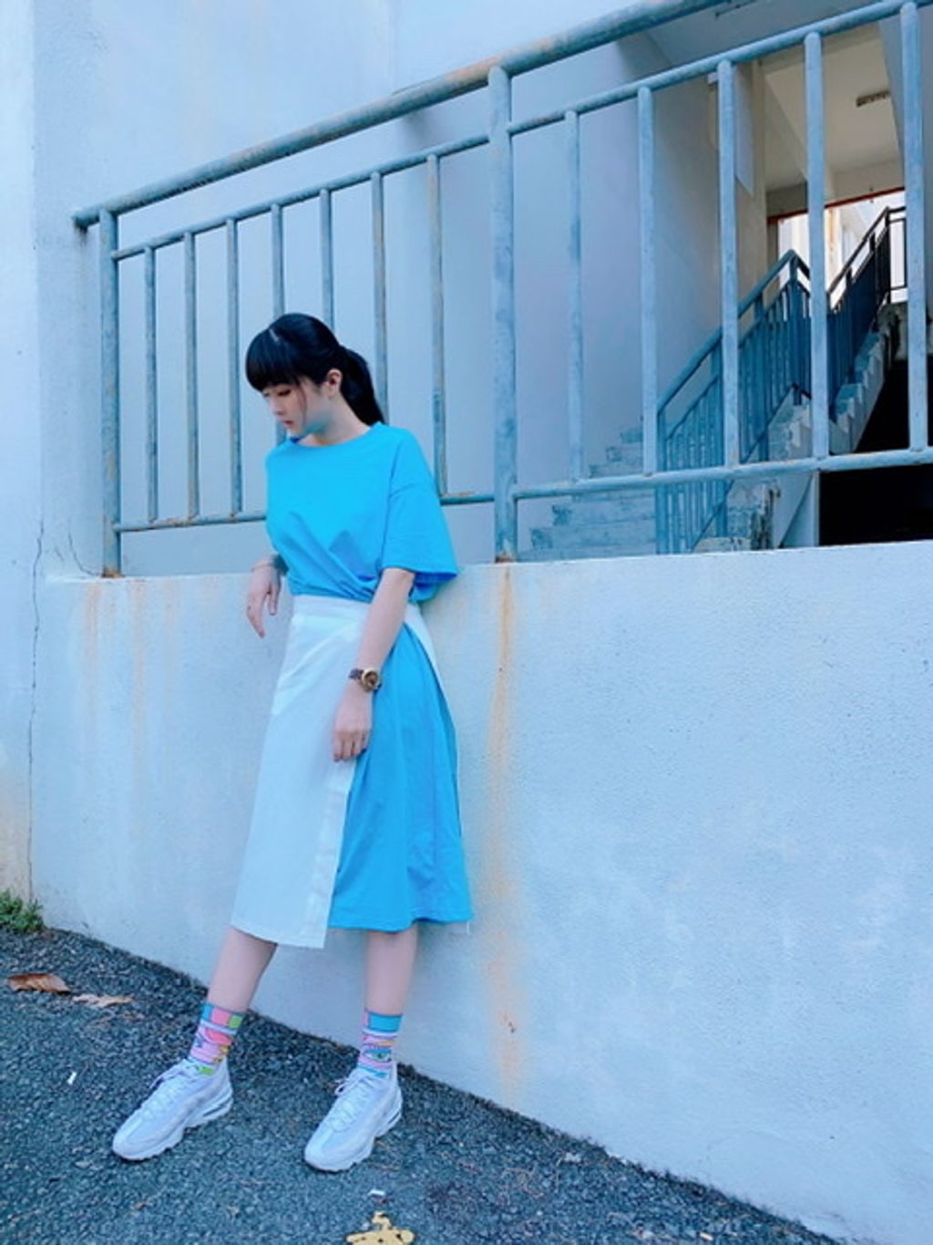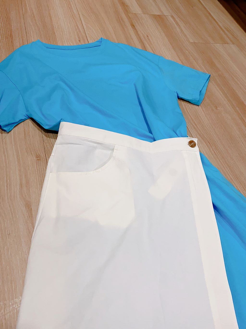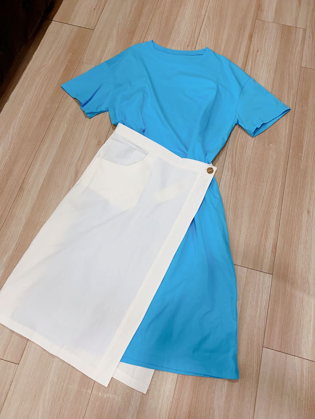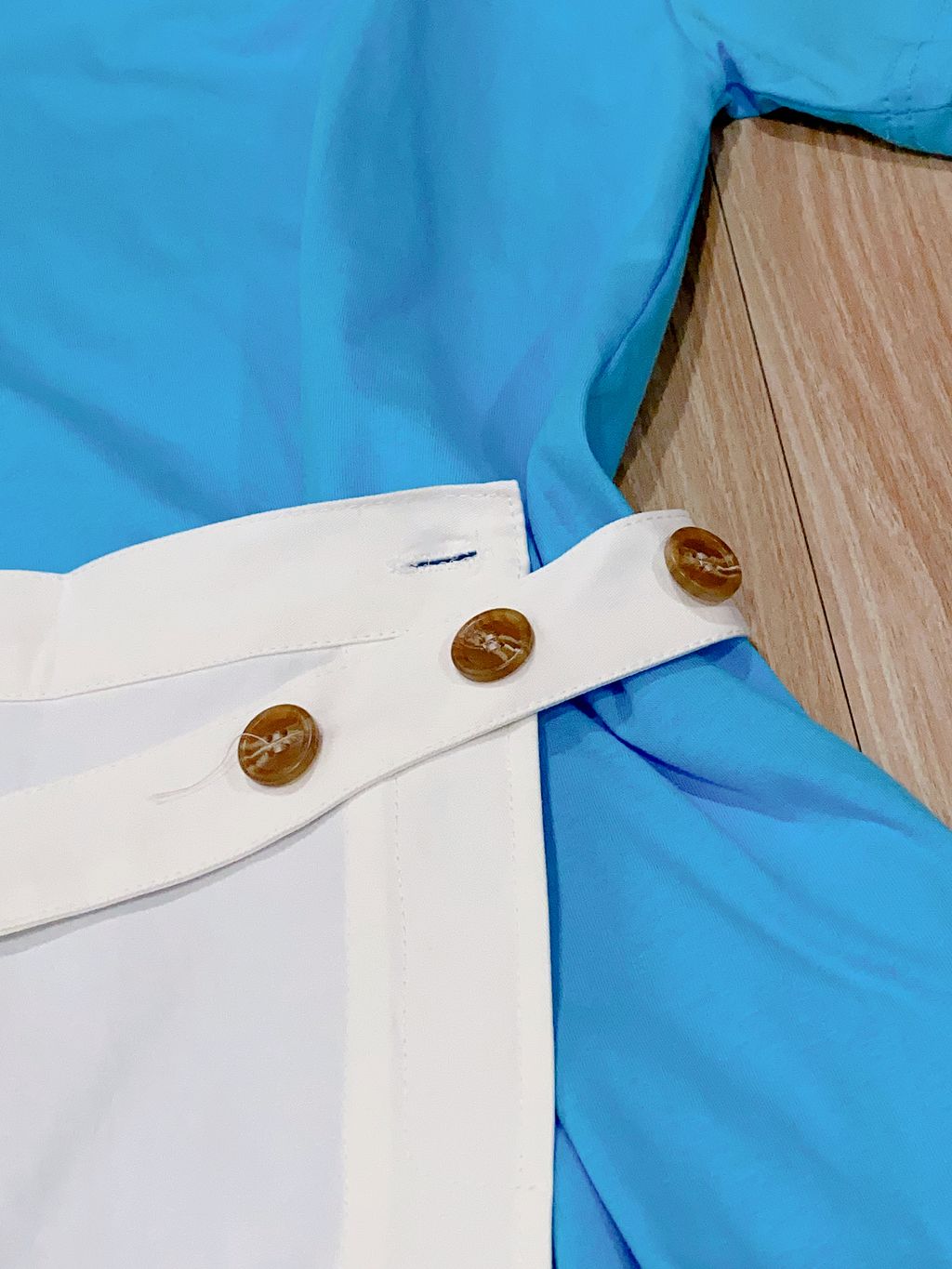 舒适亲肤布料,内搭单色连身过膝裙,有些许落肩设计;外搭围裙设计,可分开搭配,纽扣松紧开关。